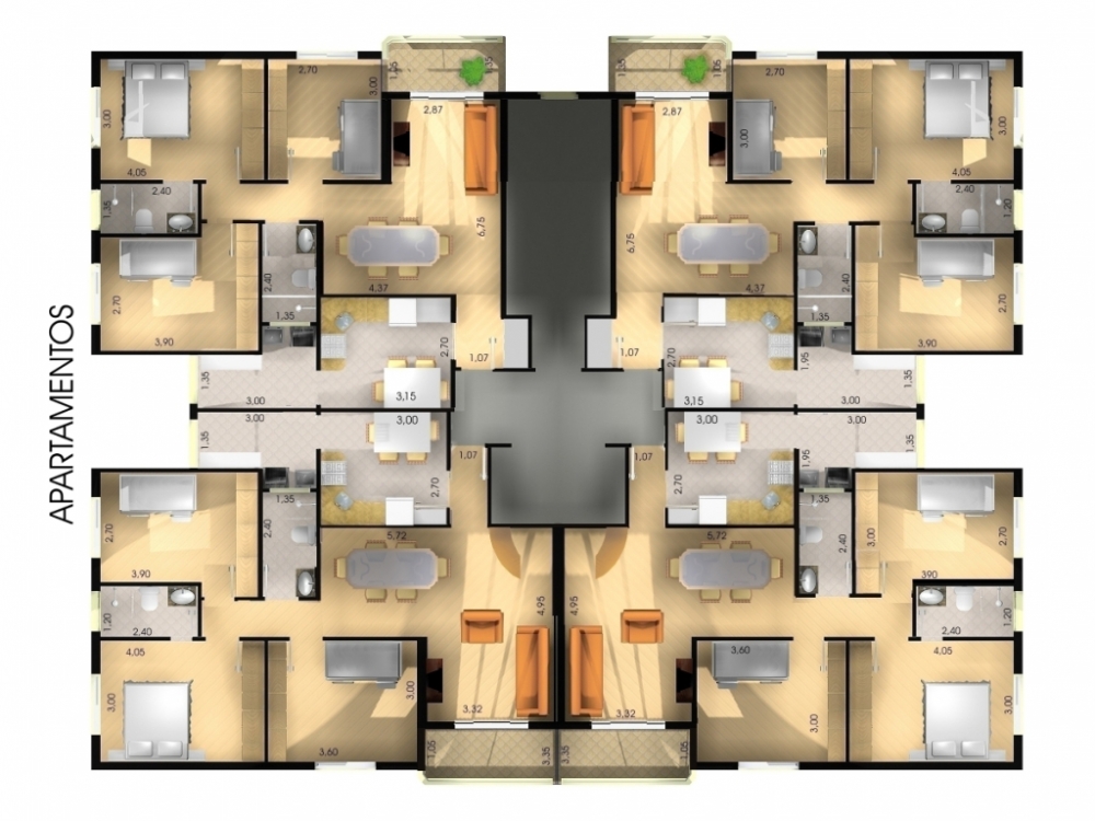 Condomínio composto por 1 edifício de 8 andares, sendo 04 apartamentos por andar, totalizando 32 unidades. Edifício com fachada revestida totalmente em grafiato, gás canalizado, janelas em esquadrias de alumínio. Próximo à uma completa infra-estrutura de transportes, comércio e serviços. Apartamentos de 89 m² e 95 m² com 3 dormitórios, sendo 1 dormitório suíte, banheiro social, área de circulação, sala em L para 02 ambientes, sacada, cozinha, área de serviços, 2 ou 3 vagas de garagem cobertas e demarcadas. Piso de alta qualidade em todos os cômodos do apartamento e revestimento com azulejo nos banheiros, cozinha e área de serviço. Nos banheiros e na cozinha as pias são de granito. O Condomínio dispõe de ampla área de lazer composta por piscina, mini quadra coberta e salão de festas com churrasqueira.